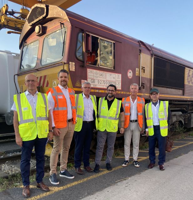- De g. à dr., Roland Heizmann, Président du groupe Portmann et directeur de Swiss Post Cargo, Claes Lindgren, responsable Transport et Services Logistiques chez IKEA Supply Chain Operations, Jean-Michel Bauer (Portmann), David Teixeira (IKEA France), Alexandre Gallo (DB Cargo France) et David Urbach, responsable du développement du groupe Portmann