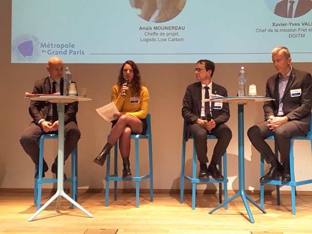 - De g. à dr. : Jérôme Douy (TLF), Anaïs Mounereau (Logistic Low Carbon), Xavier-Yves Valere (DGITM), Vincent Fromage (Chronofresh)