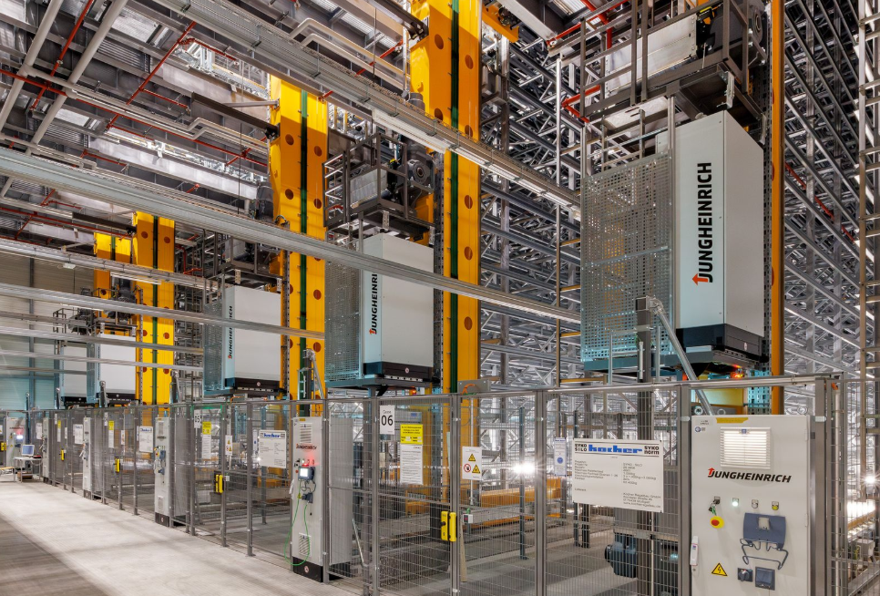 Finaliste de la catégorie dédiées aux déploiements, Jungheinrich présente ainsi son WMS déployé pour Liebherr dont l’IA intégrée optimise le processus de prélèvement. Au sein du nouvel entrepôt de pièces détachées d’Ehingen en Allemagne qui assure depuis avril 2025 l’approvisionnement mondial en pièces détachées, le WMS contrôle à la fois un système automatisé de 18 000 emplacements de palettes (photo) et un système à navettes pour petites pièces de 40 000 bacs, ainsi que neuf zones de stockage manuel.