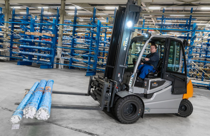 Dans la catégie Chariots de manutention, Still joue la carte de l’inclusion avec son chariot élévateur d’une capacité de 5 t adapté aux personnes de petite taille (photo). Une version spéciale du chariot élévateur électrique RX 60-50/600 a été développée en collaboration avec Barrus Engineering afin de l’équiper d’un plancher réglable électriquement, d’une entrée personnalisée, de poignées supplémentaires et d’un réglage hydraulique des fourches.