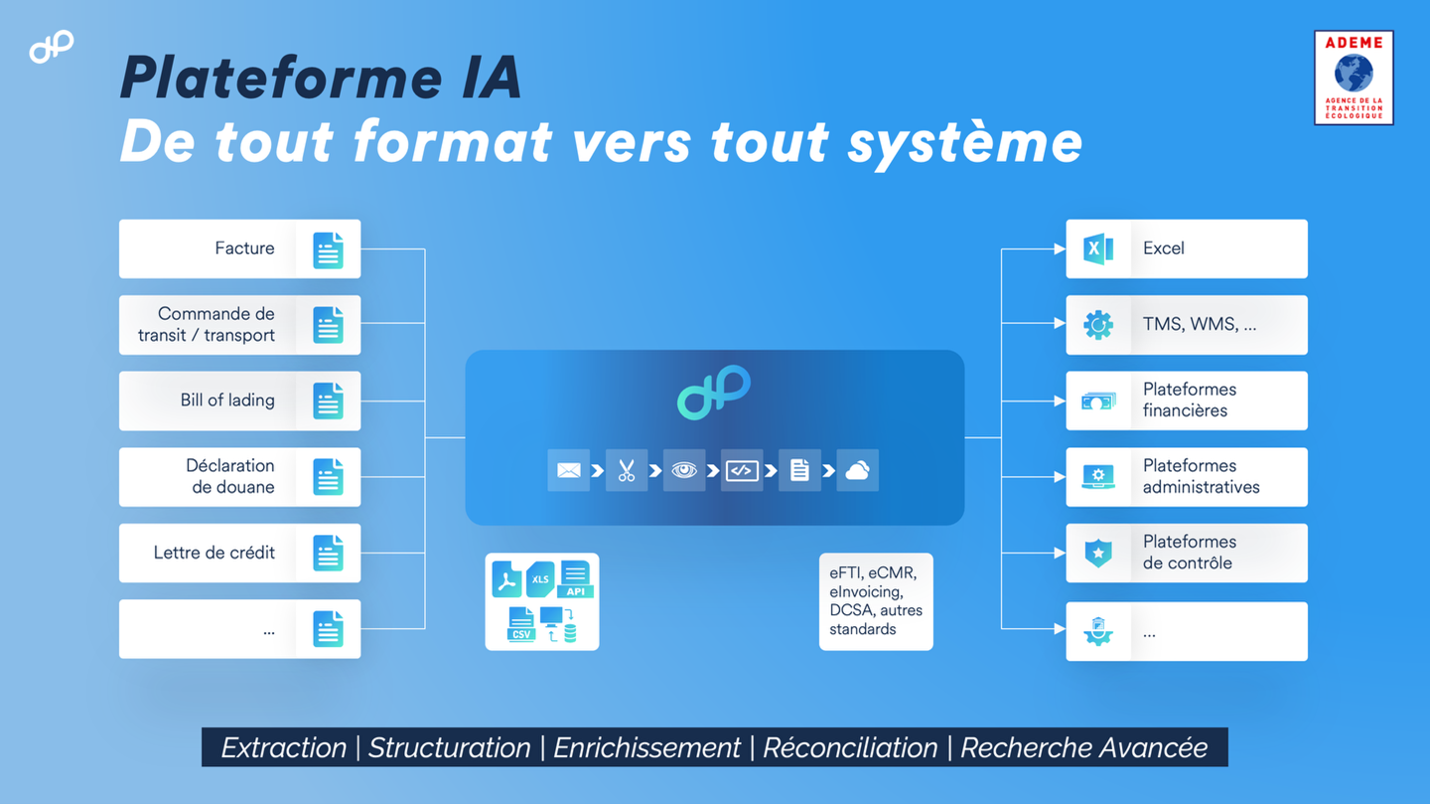 La plateforme Docloop automatise la capture, la structuration et la circulation de tout document logistique de façon dématérialisée. Objectif : éviter les 900 milliards de feuilles imprimées chaque année dans le monde pour le fret… Opérationnelle depuis fin 2023, la plateforme a traité 300 000 documents, évitant 1,5 tonne de CO2 et supprimant 25 000 heures de saisie manuelle à 15 clients. La nouvelle version, à l’échelle européenne, vise 1 million de tonnes de CO2 évité sur 20 ans. L’outil permet de réduire 80% de la saisie manuelle et 86% les erreurs de saisie. La société proposera à terme des tableaux de bord pour mesurer les impressions évitées et les économies de CO2.
