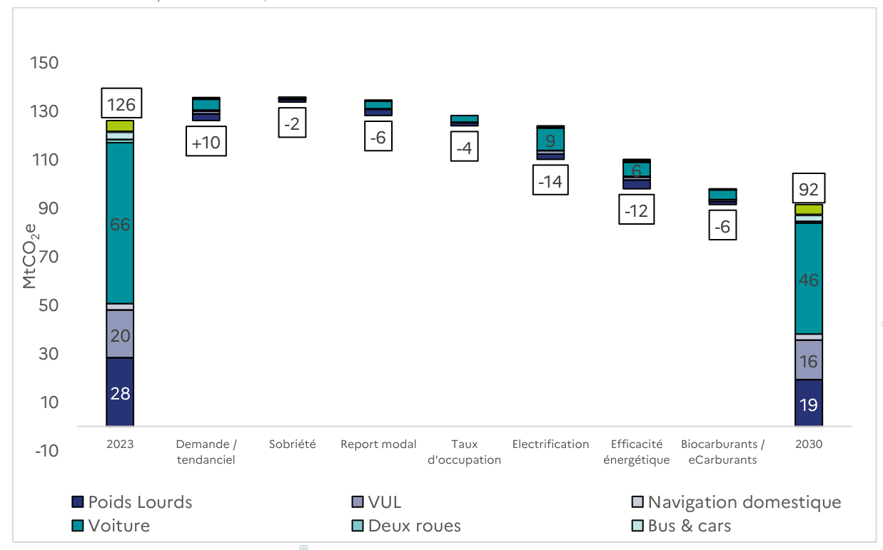 - Leviers de réduction des émissions 2023-2030 (transport domestique)